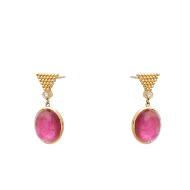 Χειροποίητα Σκουλαρίκια Κίτρινο Χρυσό 18K με Τουρμαλίνη 8,80ct και Μπριγιάν 0,06ct