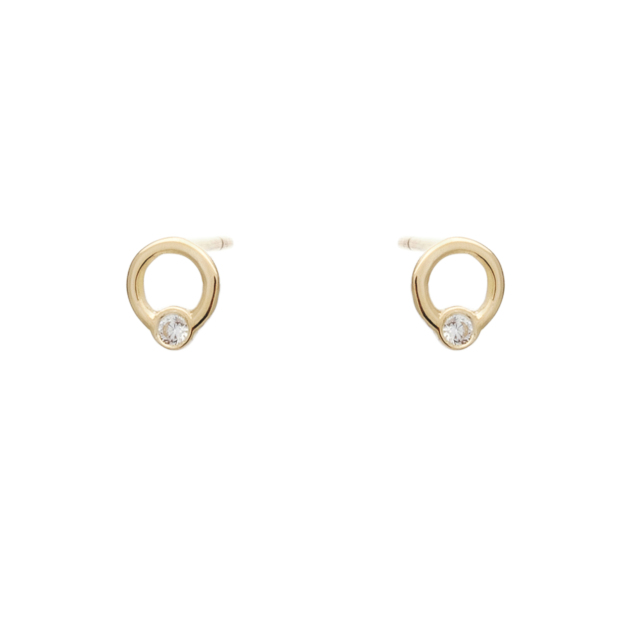 Σκουλαρίκια Περίγραμμα Κύκλου Κίτρινο Χρυσό 14Κ με Λευκό Ζιργκόν
