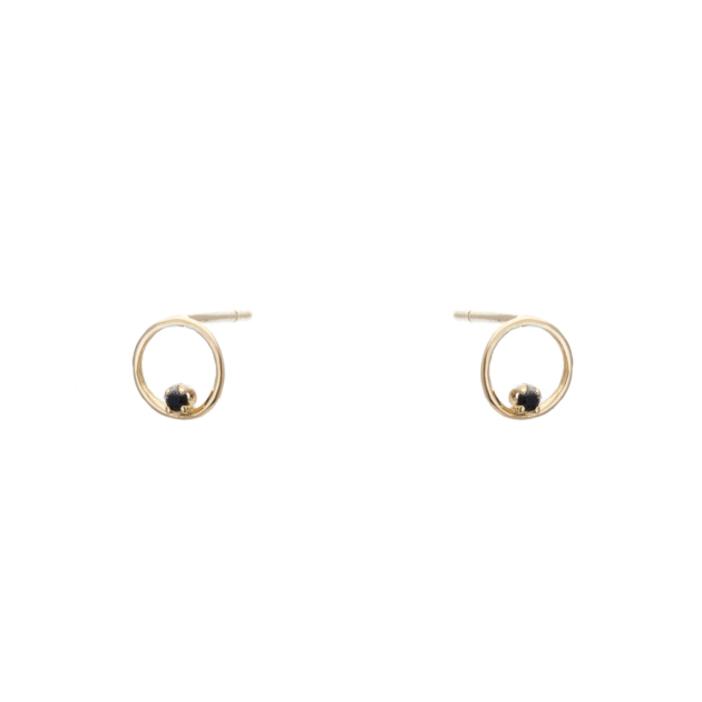 Σκουλαρίκια με Περίγραμμα σε Σχήμα Κύκλου Κίτρινο Χρυσό 14Κ με Μαύρα Ζιργκόν