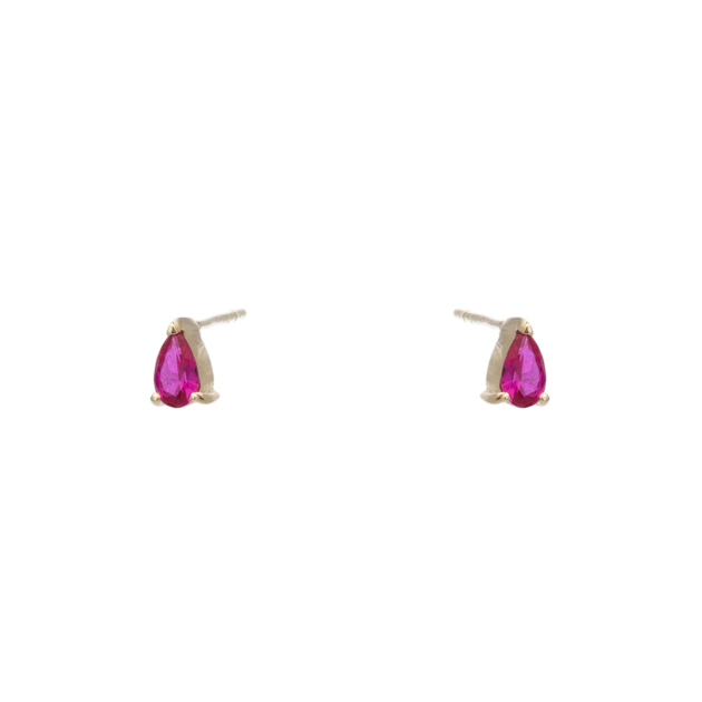 Σκουλαρίκια Πουάρ Κίτρινο Χρυσό 14Κ με Κόκκινο Ζιργκόν