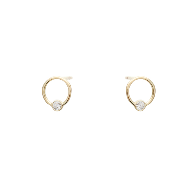 Σκουλαρίκια Περίγραμμα σε Σχήμα Κύκλου Κίτρινο Χρυσό 14K με Λευκά Ζιργκόν