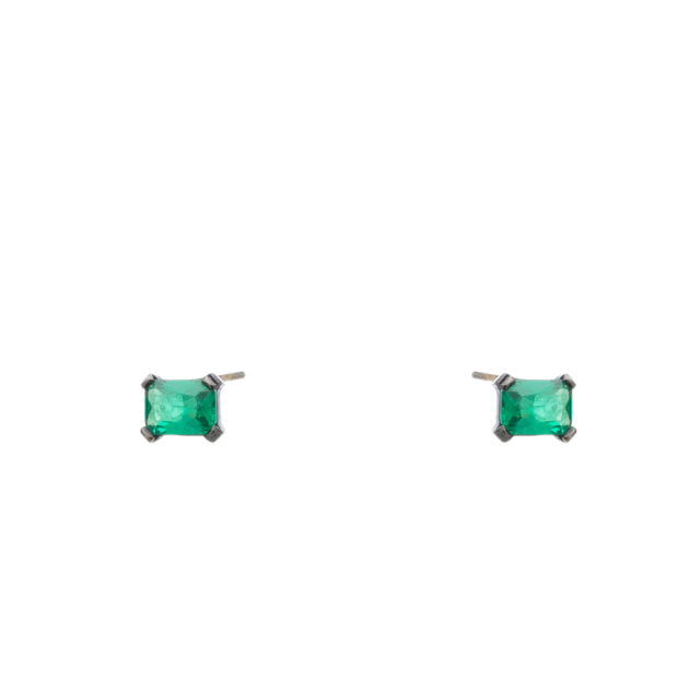 Σκουλαρίκια Κίτρινο Χρυσό 14Κ με Πράσινο Ορθογώνιο Ζιργκόν και Μαύρο Επιπλατίνωμα