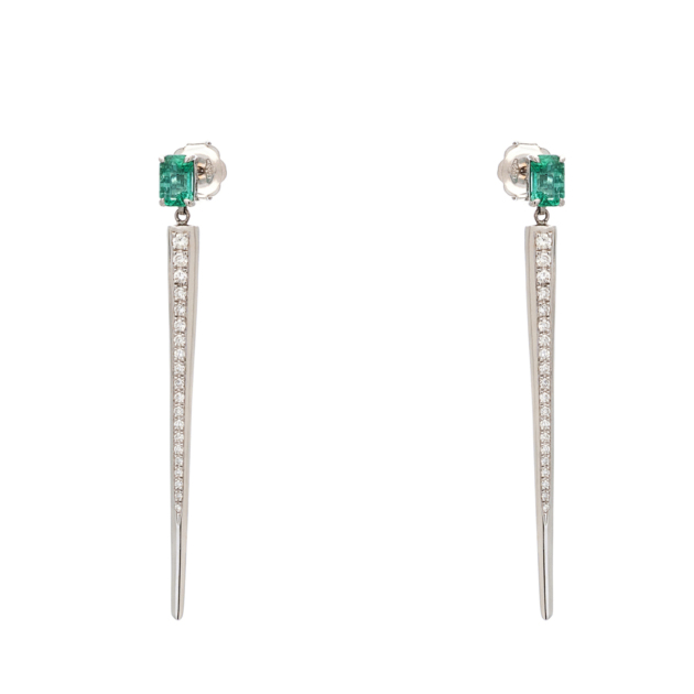 Σκουλαρίκια Κρεμαστά Λευκό Χρυσό 18Κ με Σμαράγδια και Μπριγιάν