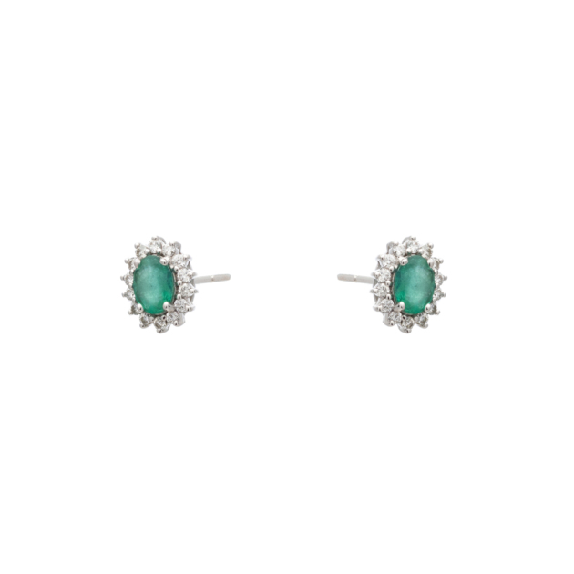 Σκουλαρίκια Ροζέτες Λευκό Χρυσό 18Κ με Σμαράγδι & Μπριγιάν