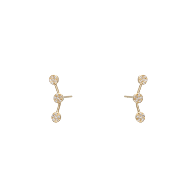 Σκουλαρίκια Μπάρα με Κυκλικό Design Κίτρινο Χρυσό 14Κ με Λευκά Ζιργκόν