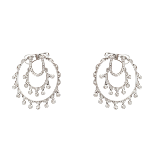 Σκουλαρίκια Ημικύκλια Λευκό Χρυσό 18Κ με Κρεμαστά Μπριγιάν