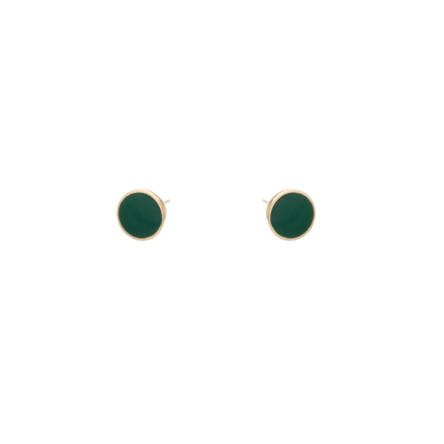 Σκουλαρίκια Κύκλος Κίτρινο Χρυσό 14K με Πράσινο Σμάλτο