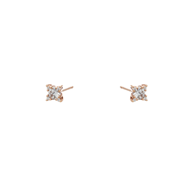 Σκουλαρίκια Τετράγωνο Μονόπετρο Ροζ Χρυσό 14Κ με Ζιργκόν