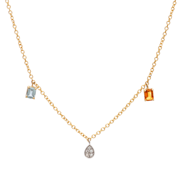 Μενταγιόν Κίτρινο Χρυσό 18K με Citrin – Aqua & Μπριγιάν 0,03ct