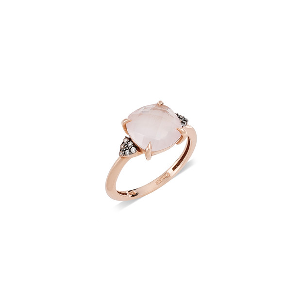Δαχτυλίδι Ροζ Χρυσό 14Κ με Ροζ Κουόρτζ και Λευκά Ζιργκόν