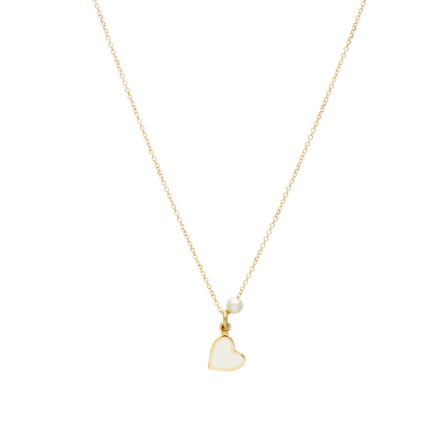 Μενταγιόν Καρδούλα Κίτρινο Χρυσό 14Κ με Λευκό Σμάλτο