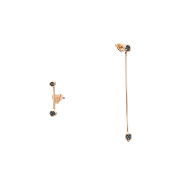 Bar Stud Earrings 14K Rose Gold with Blue Zircons