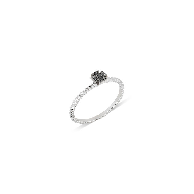 Thin Rope Star Ring 18K White Gold with Diamonds 0.05ct
