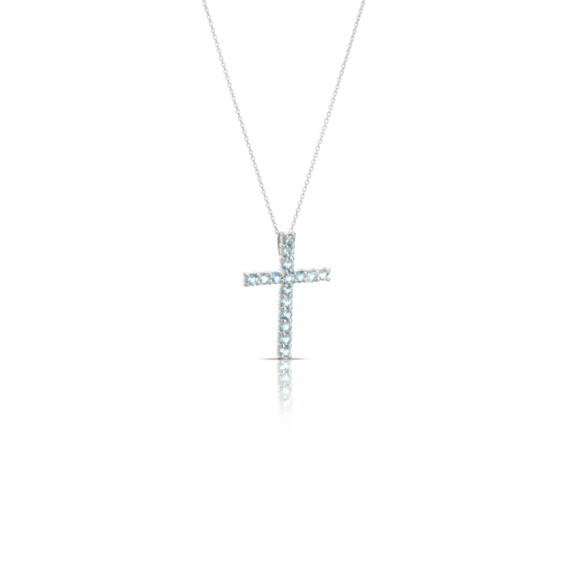 Cross Neclace White Gold 18Κ with Αqua Marine 0,75