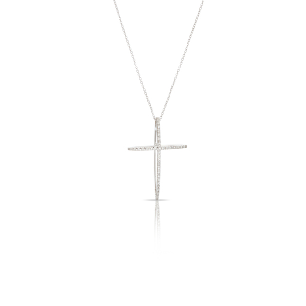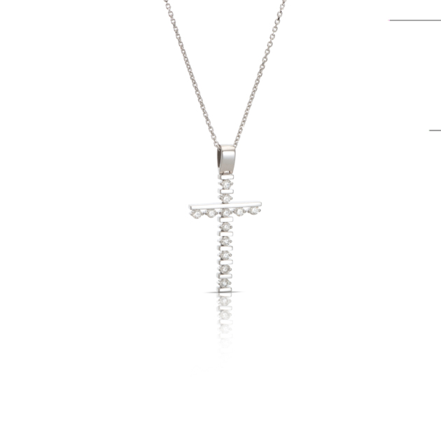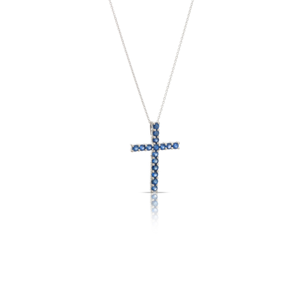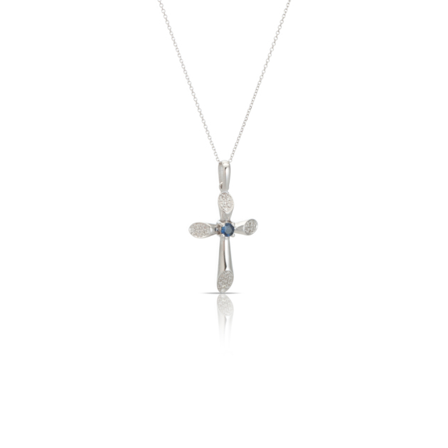 Cross Neclace White Gold 8Κ with Sapphire 0,90