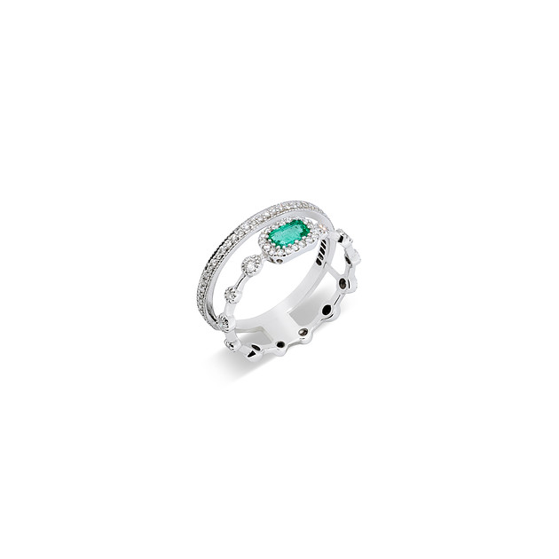 Ring 18K White Gold with Emerald & Diamonds