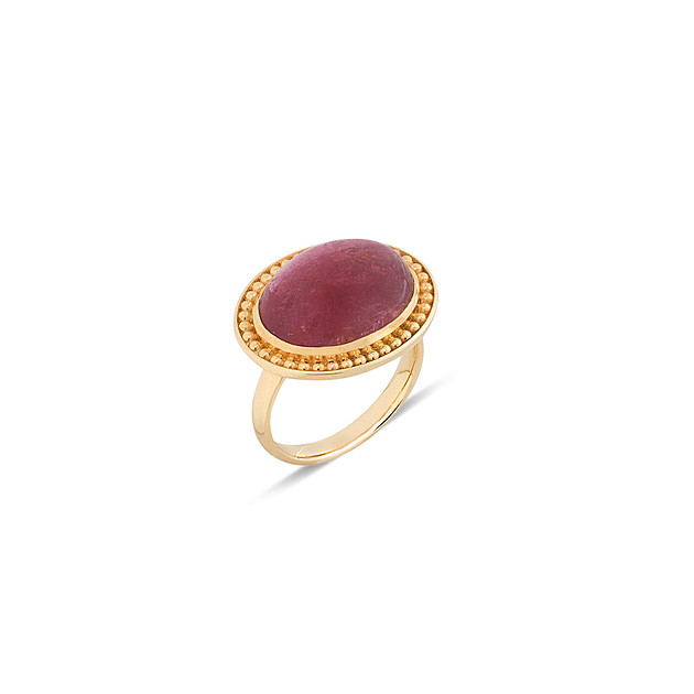 Oval Chevalier Ring 14K Yellow Gold with Brown Zircons