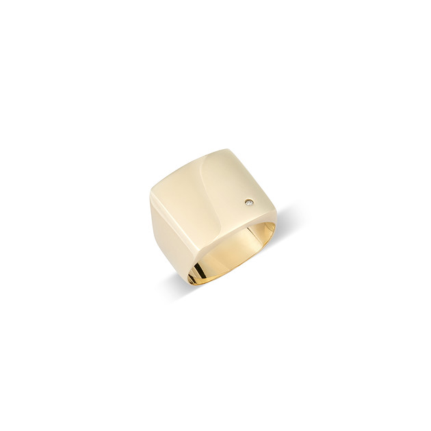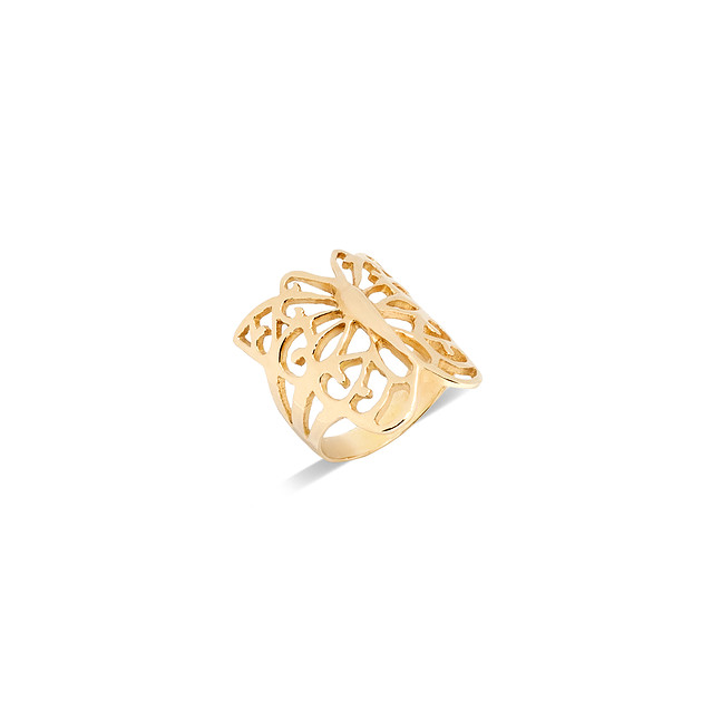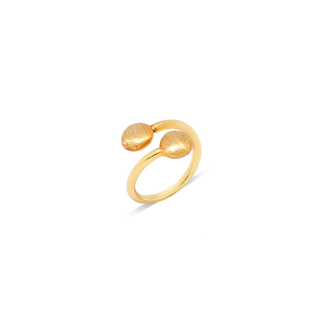 Two Hearts Ring 14K Yellow Gold with Black Enamel