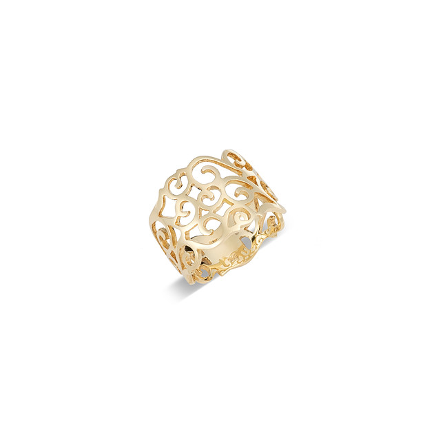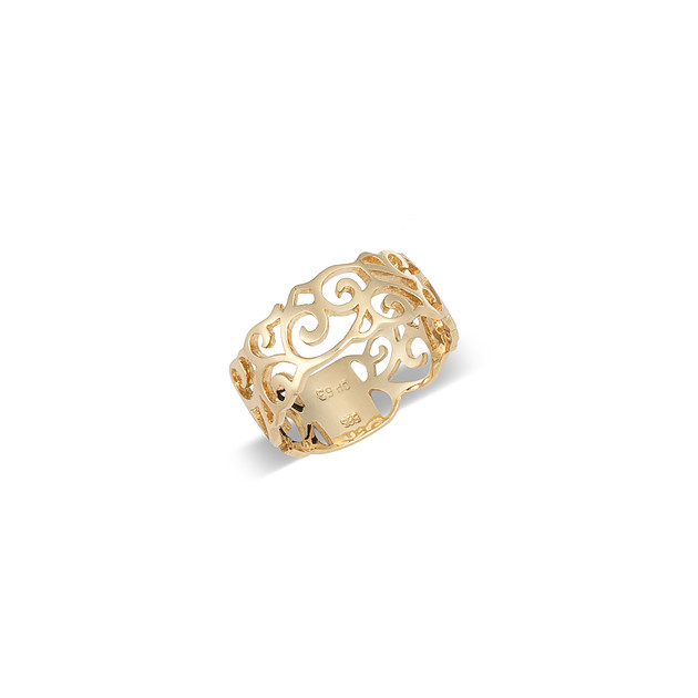 Square Chevalier Ring 14K Yellow Gold with Black Enamel