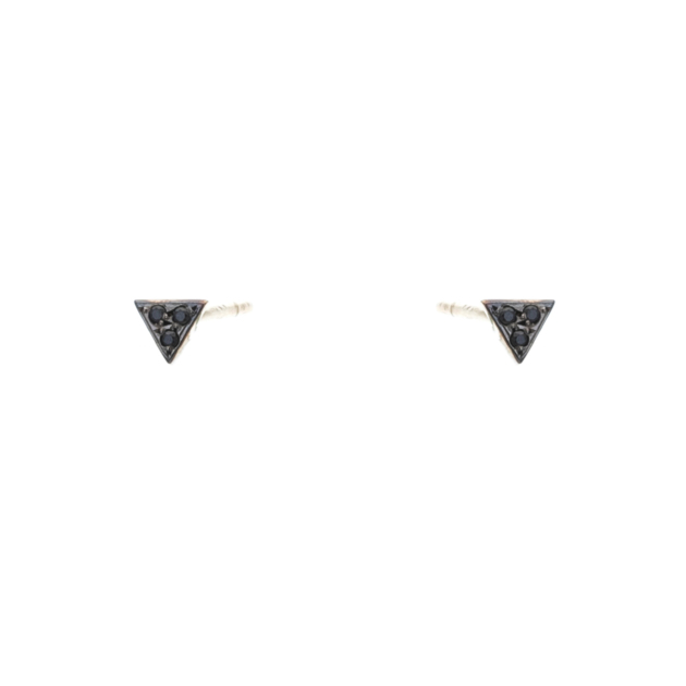 Triangle Stud Earrings 14K Yellow Gold with Black Zircons