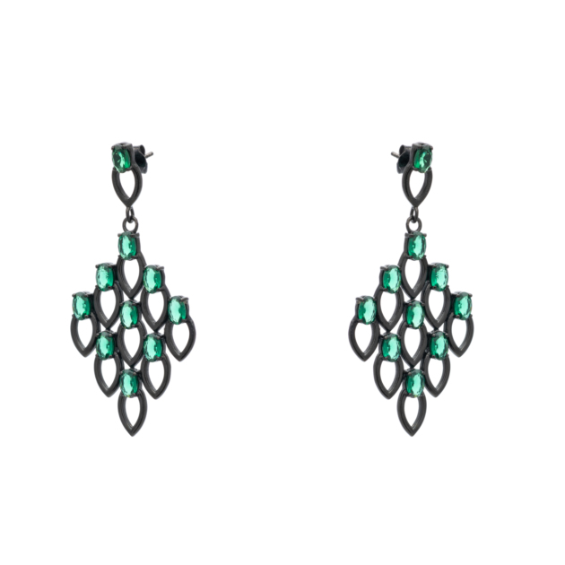 Heart Stud Earrings 14K Yellow Gold with Black Enamel