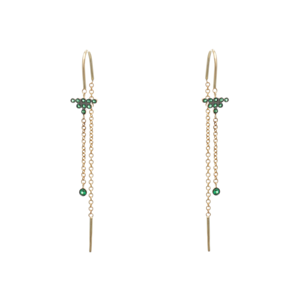 Chained Earrings 14K Yellow Gold with Green Zircons