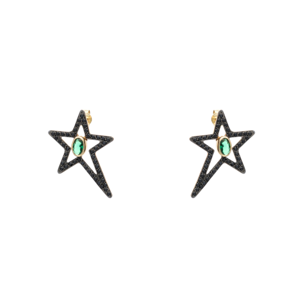 Stud Earrings 14K Yellow Gold with Black & Green Zircons