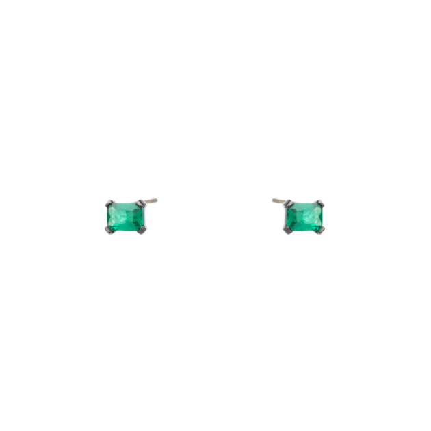 Stud Earrings 14K Yellow Gold with Green Rectangular Zircon & Black Platinum Plating