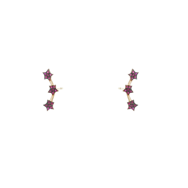 Bar Stud Earrings 14K Yellow Gold with Stars & Red Zircons
