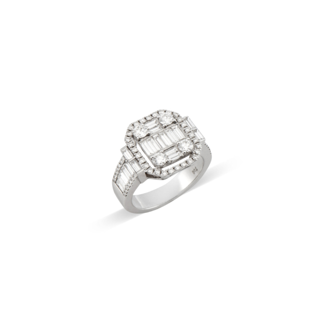 Ring 18K White Gold with Diamonds 0.80ct & Baguette Diamonds 1.40ct