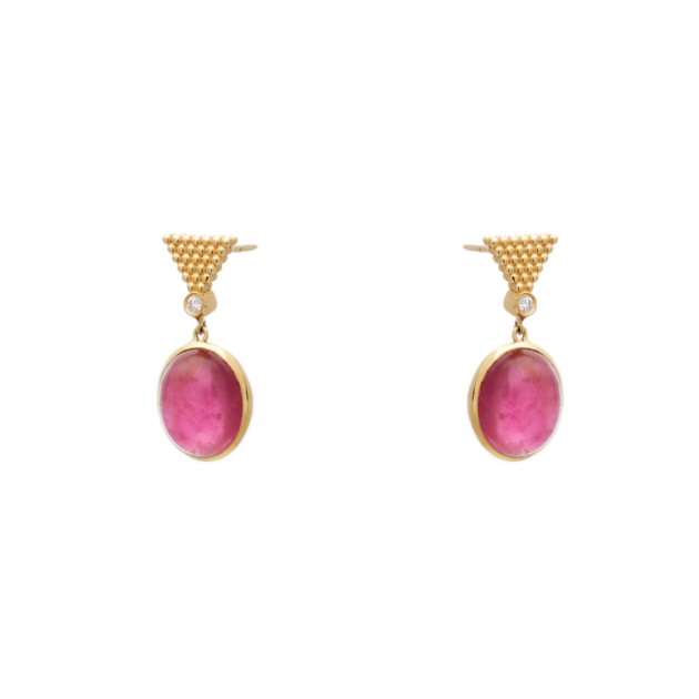 Drop Earrings 18K Yellow Gold with Tourmaline 8,80ct & Diamonds 0,06ct
