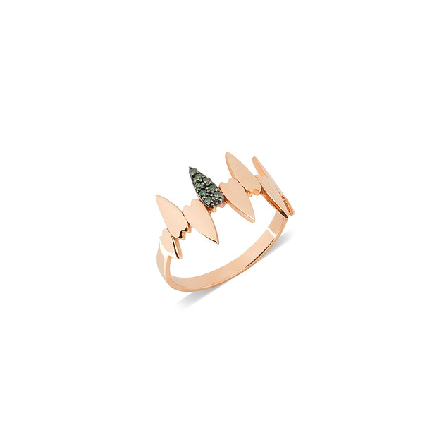 Description Eternity ring in 14K yellow gold decorated with four green zircons
