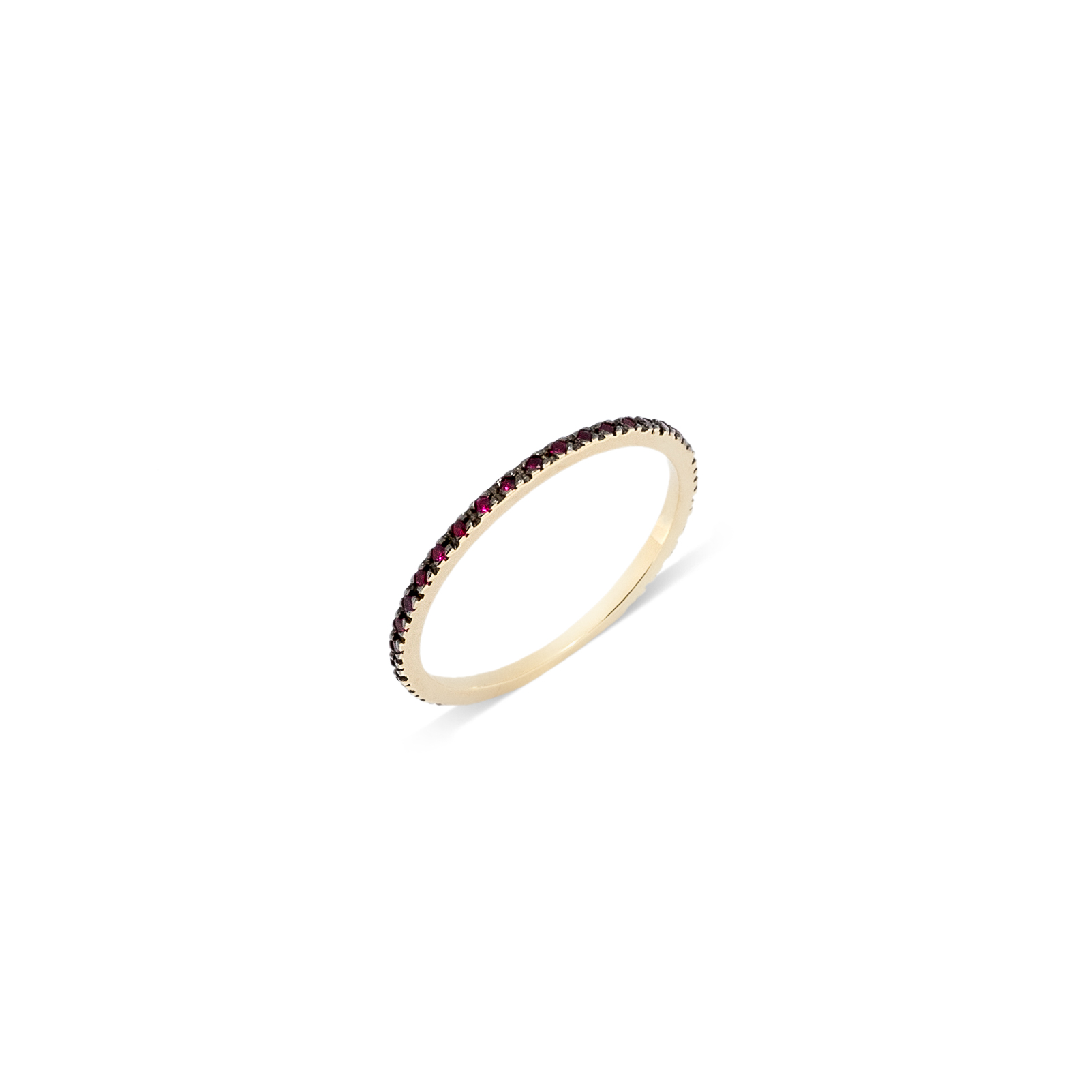 | Description | Eternity ring in 14K yellow gold decorated with red zircons and black platinum plating |
