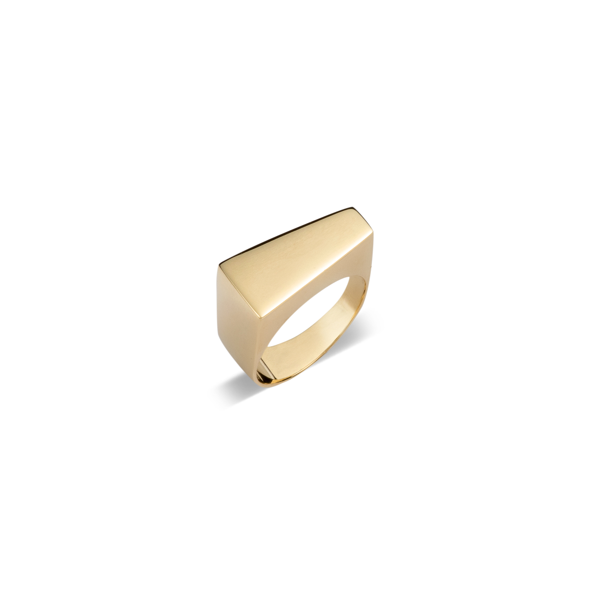 | Description | Chevalier ring in 14K yellow gold in a geometric design |