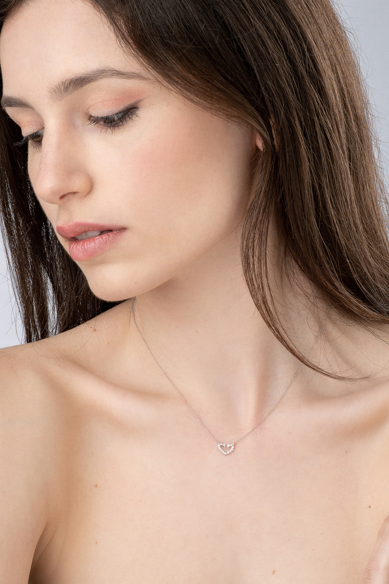 | Description | Pendant in 14K white gold featuring an impressive heart design decorated with white zircons |
