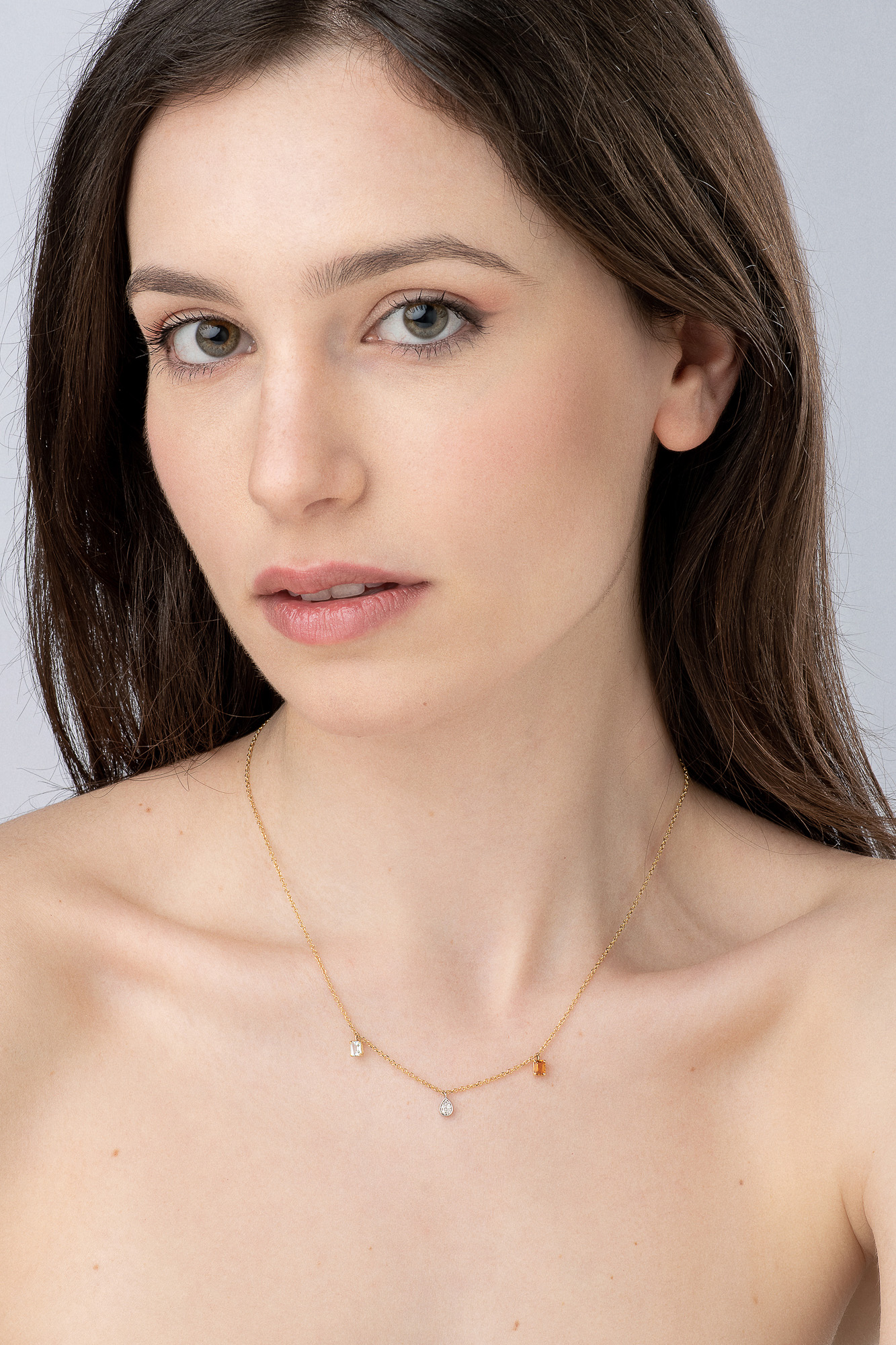 Description Pendant in 14K yellow gold adorned with Citrin, Aqua, and brilliant cut diamonds