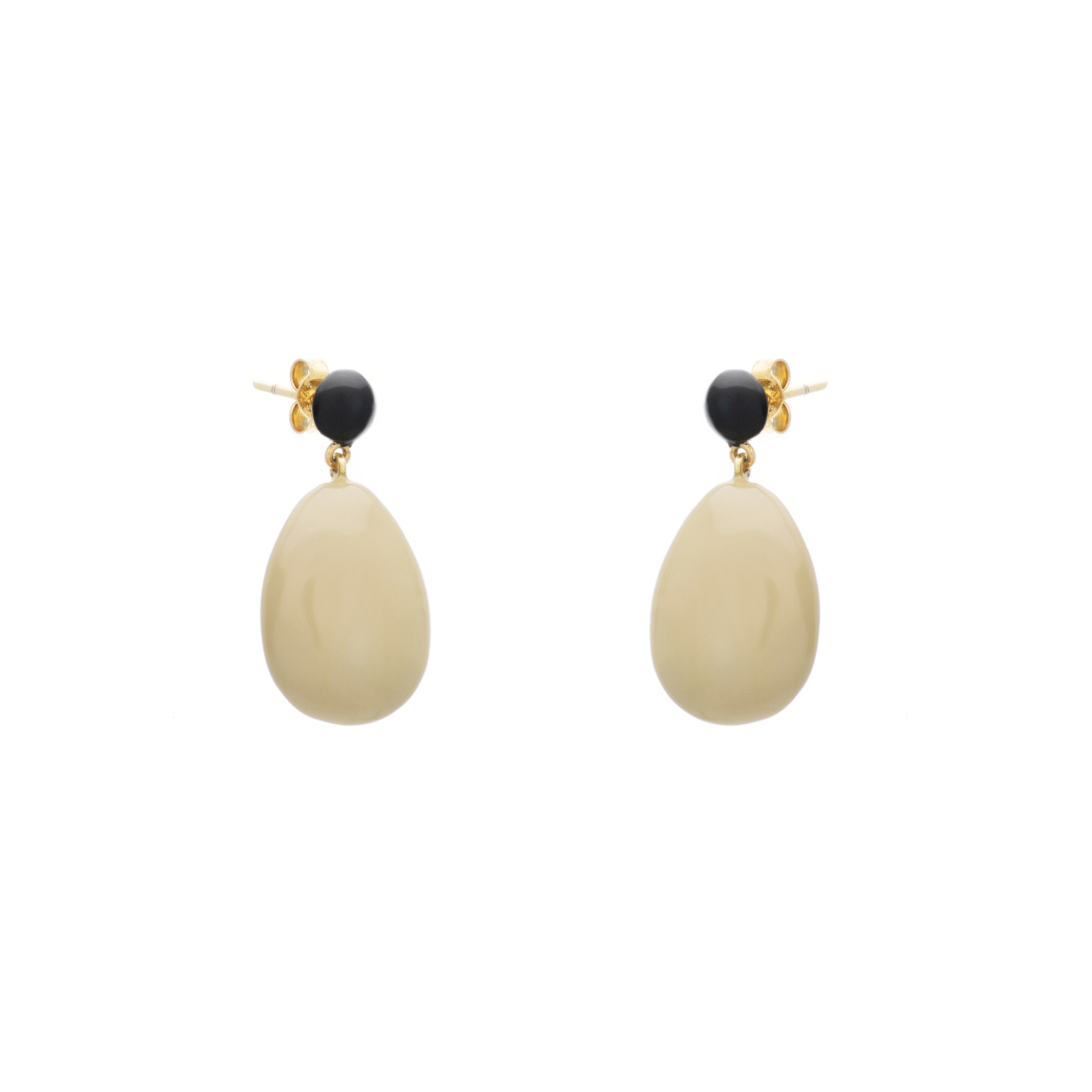 | Description | Drop earrings in 14K yellow gold decorated with olive and black enamel |