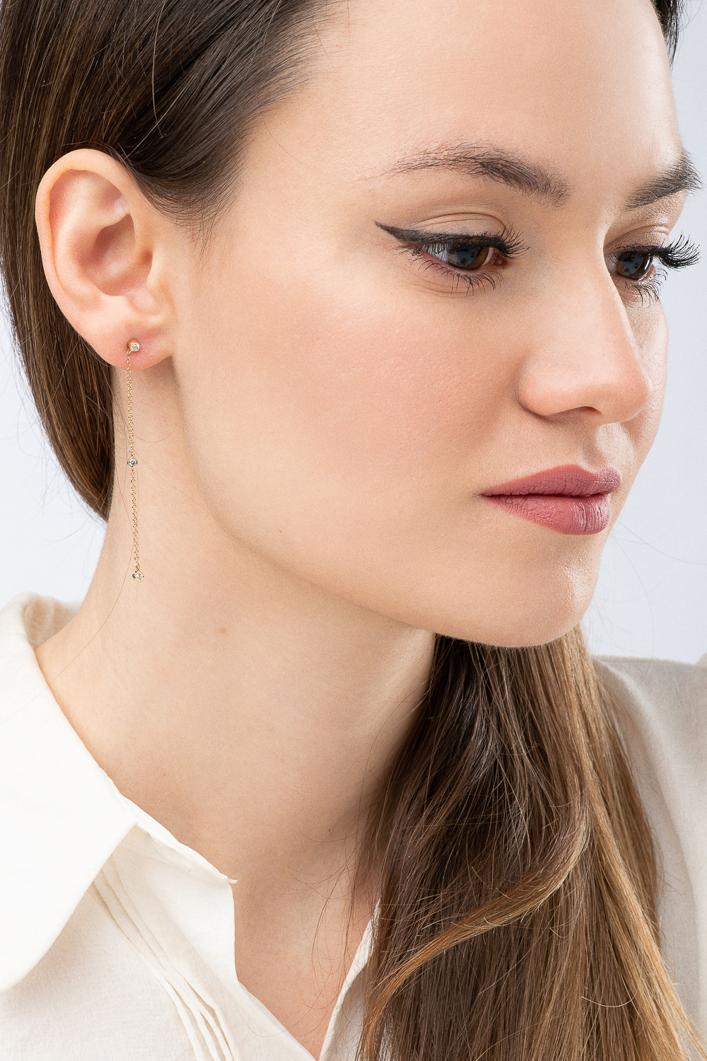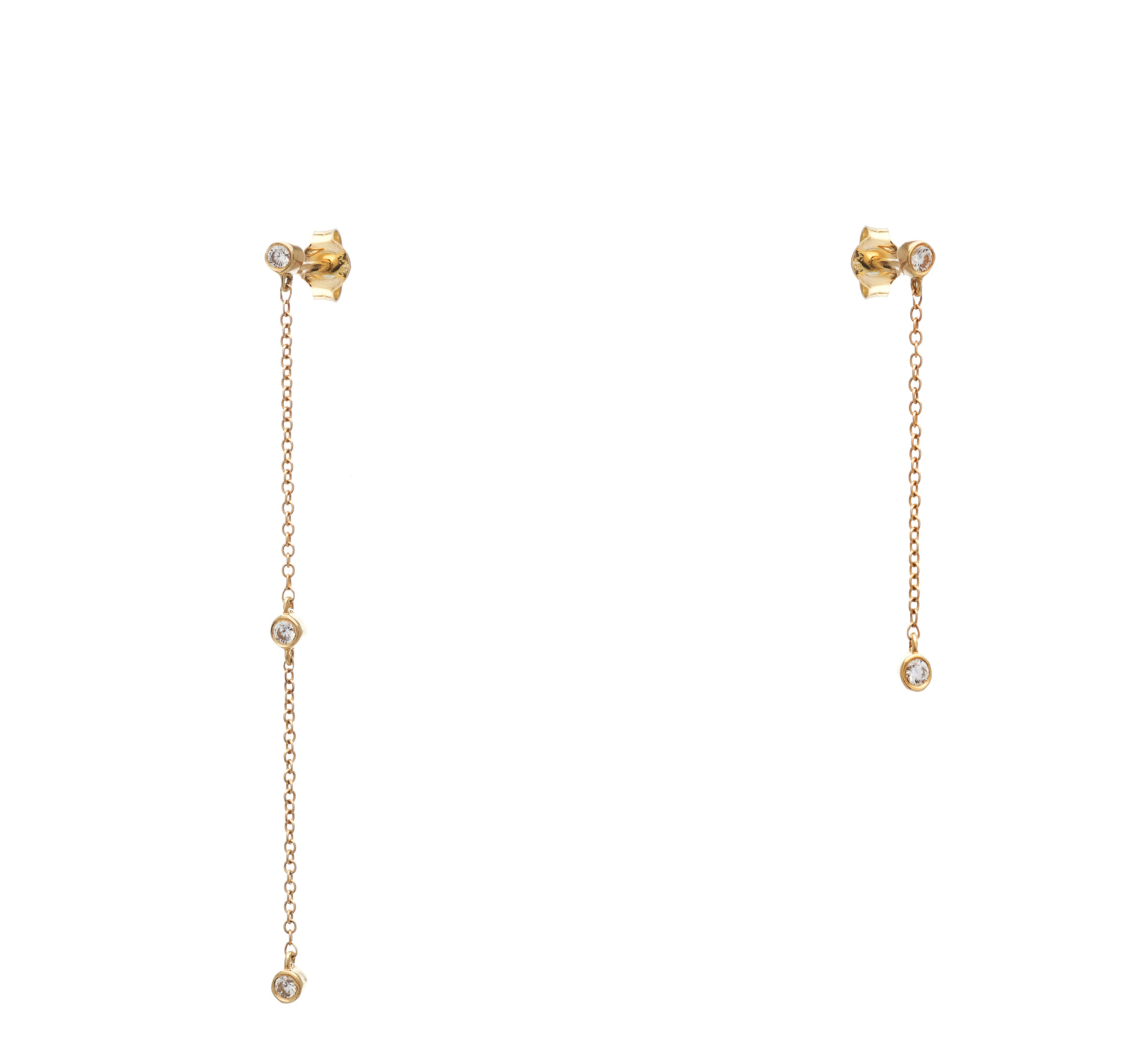 Long Chain Stud Earrings 14K Yellow Gold