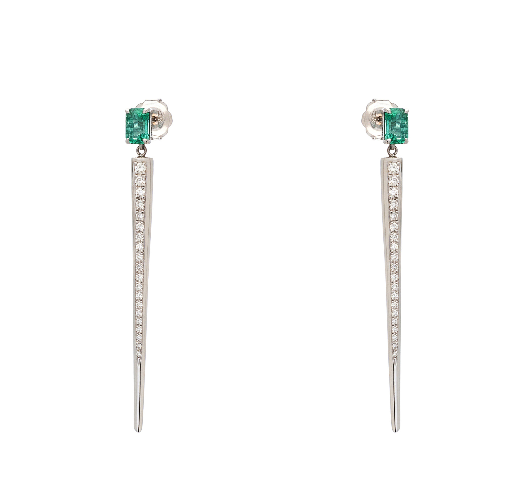 | Description | Dangle earrings in 18K white gold adorned with brilliant cut diamonds and emeralds |