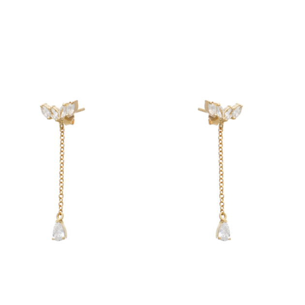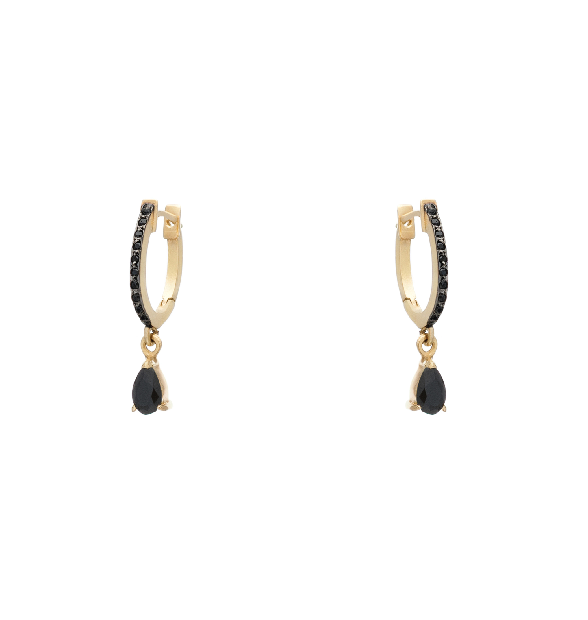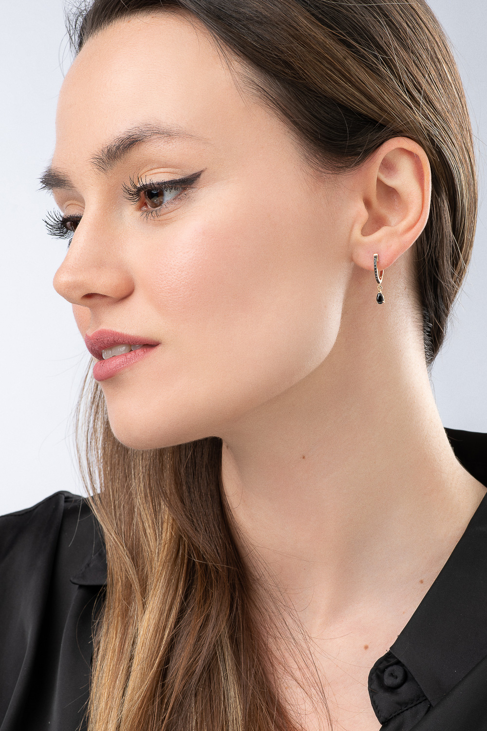 | Description | Drop earrings in 14K yellow gold decorated with black platinum plating and elegant black zircons |