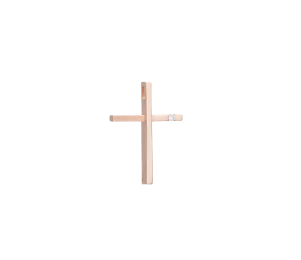Description Massif cross pendant in 14K rose gold in a thin design decorated with a white zircon