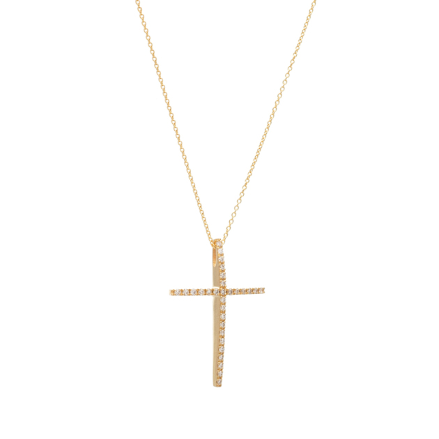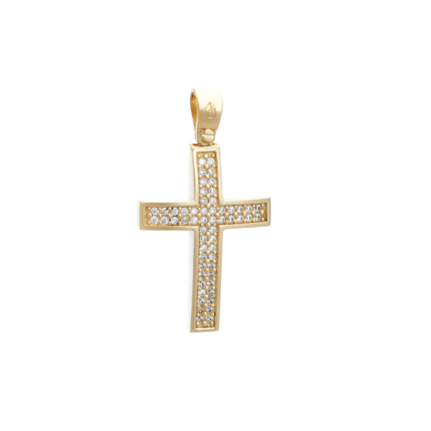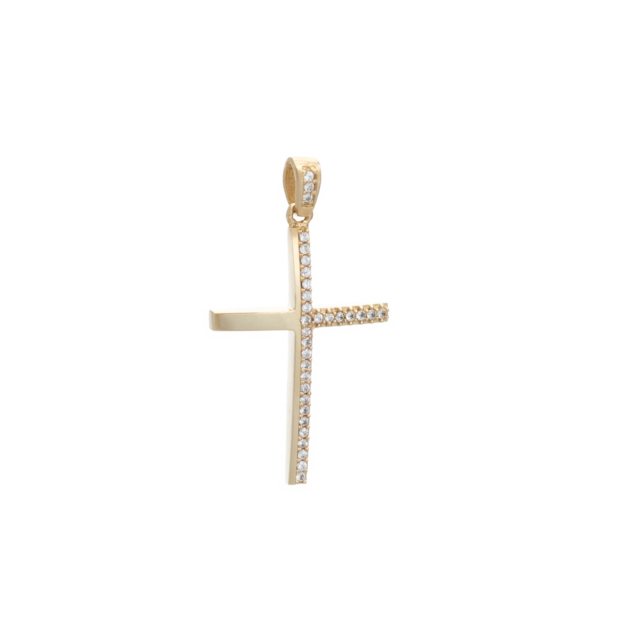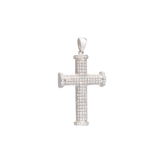 Description Cross pendant in 14K white gold in an elegant design with white zircons on the bottom