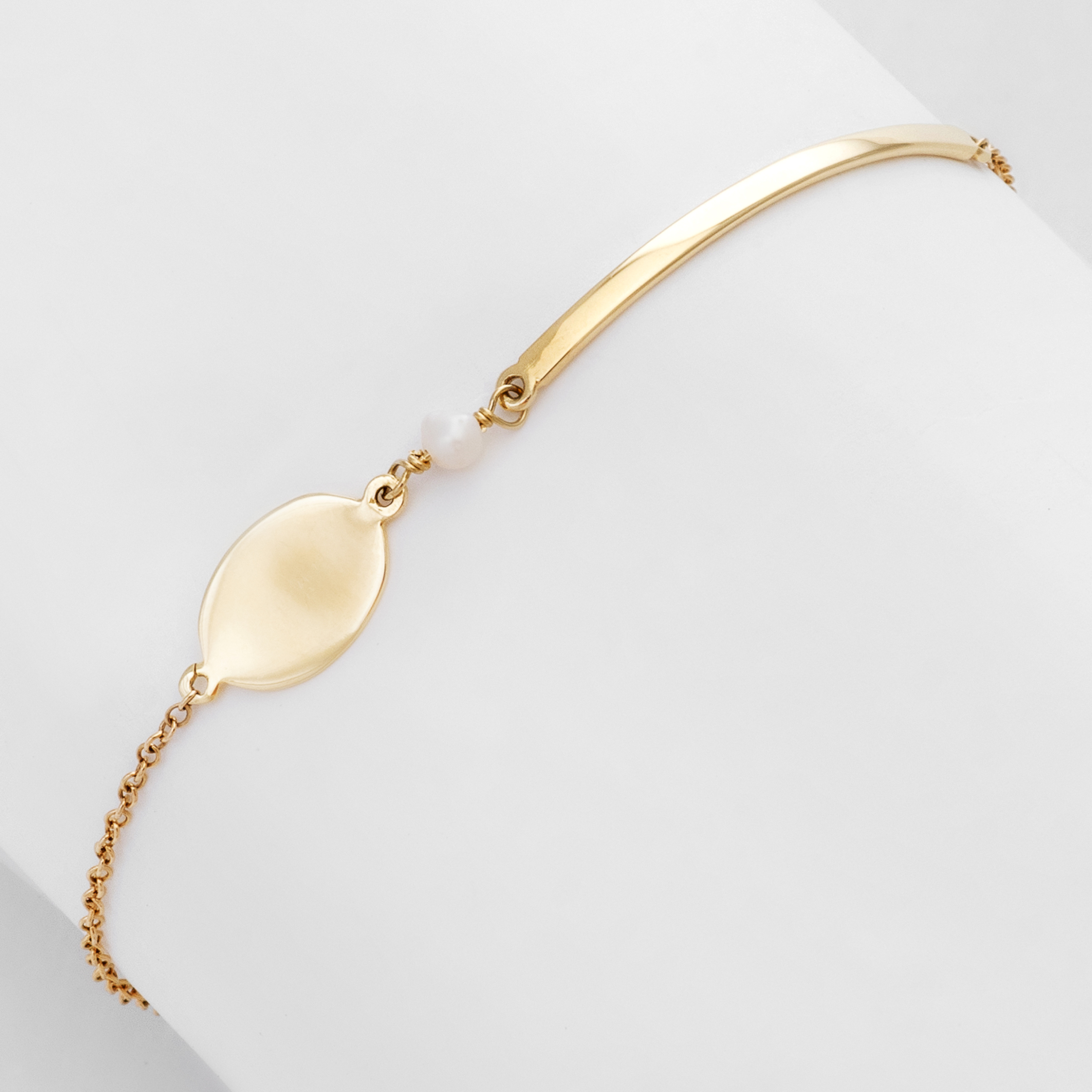 Bar & Oval Chain Bracelet 14K Yellow Gold with Pearl