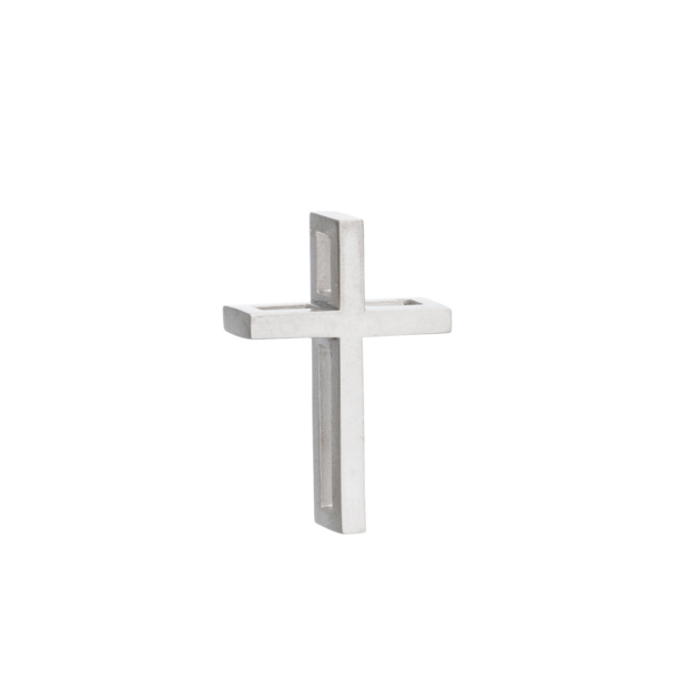 Σταυρός Τρισδιάστατος με Κενό Λευκό Χρυσό 14K Ματ