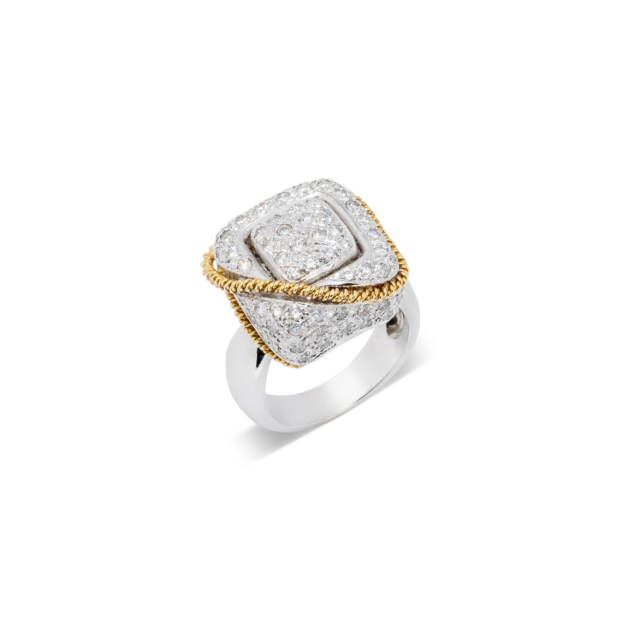 Δαχτυλίδι Λευκό Χρυσό 18K με Χρυσή Λεπτομέρεια και Μπριγιάν