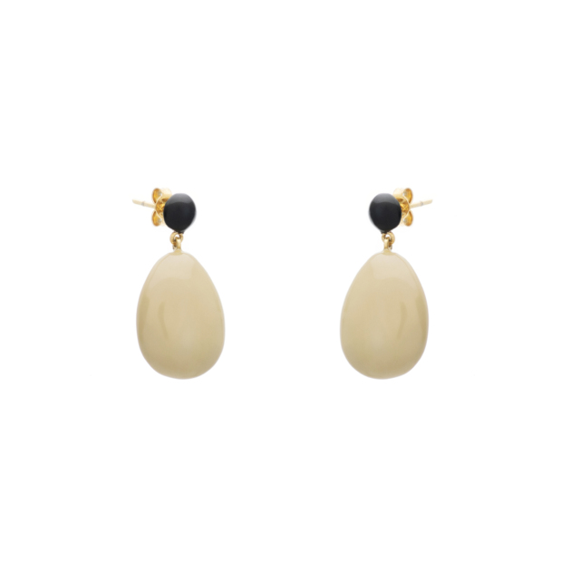 Σκουλαρίκια Κίτρινο Χρυσό 14Κ με Λαδί και Μαύρο Σμάλτο
