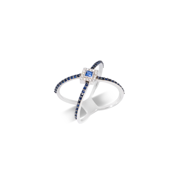 Δαχτυλίδι Λευκό Χρυσό 18K με Ζαφείρια και Μπριγιάν