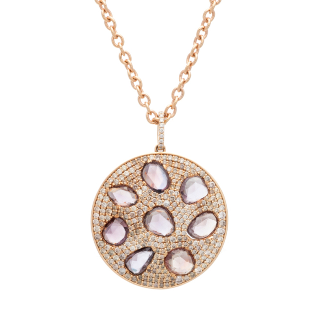 Μενταγιόν Στρογγυλό Ροζ Χρυσό 18K με Ζαφείρια και Brown Μπριγιάν