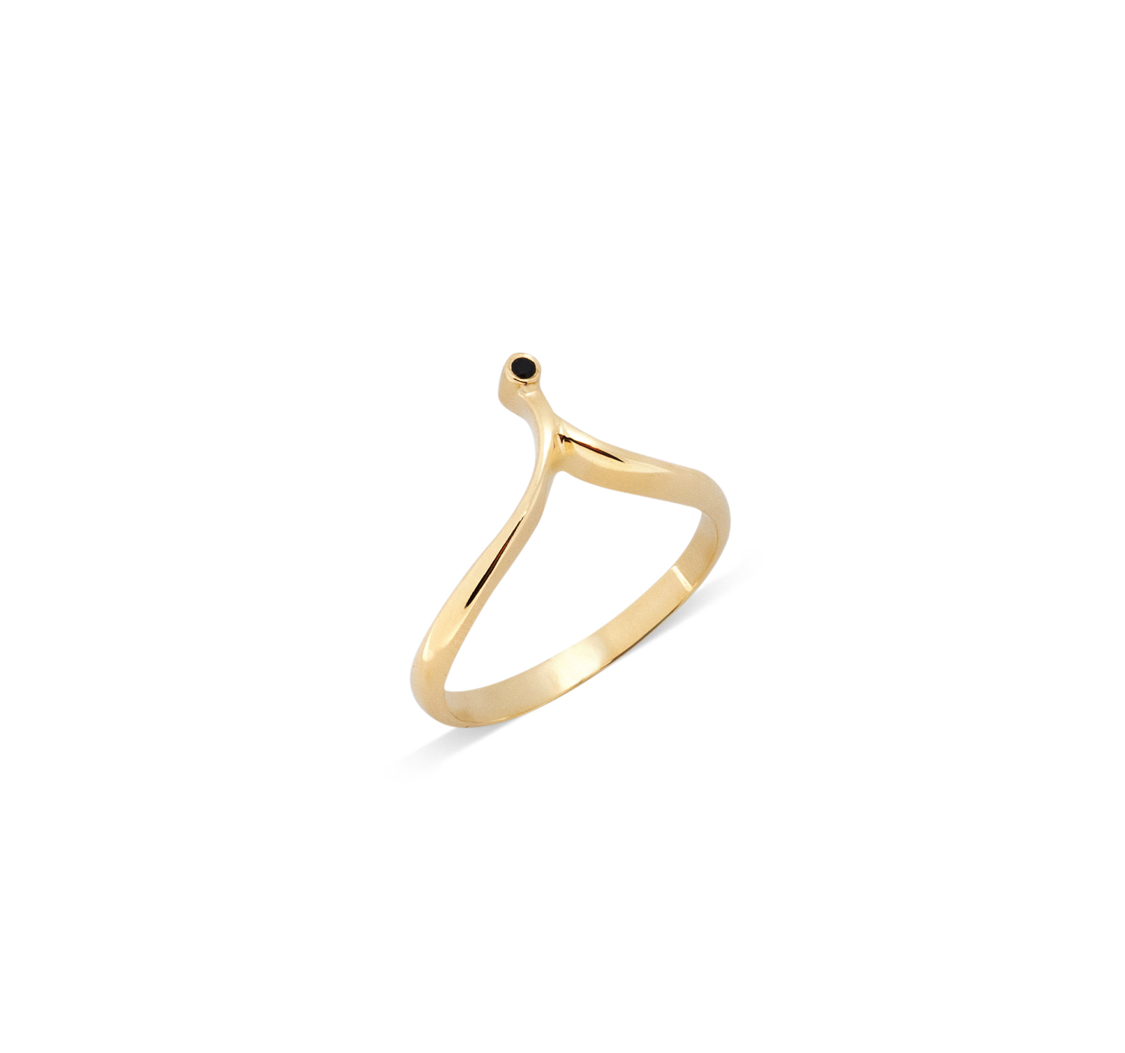Περιγραφή Δαχτυλίδι από κίτρινο χρυσό 14Κ σε καμπυλωτό σχέδιο με μαύρο ζιργκόν