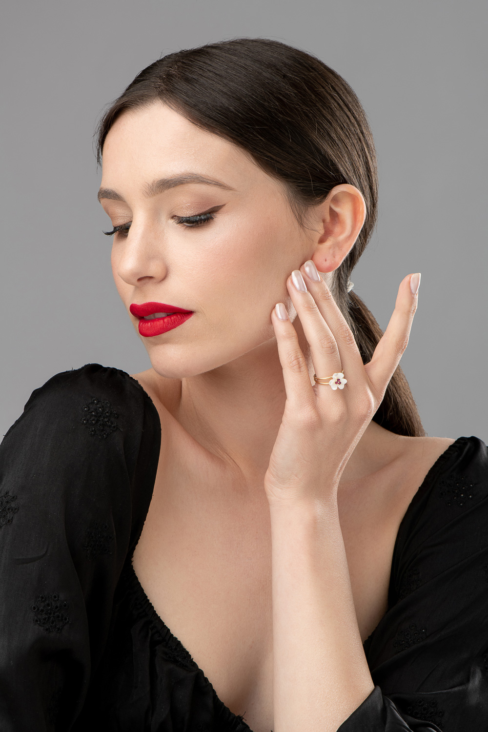 Δαχτυλίδι Λουλούδι Κίτρινο Χρυσό 18Κ με Ρουμπίνια